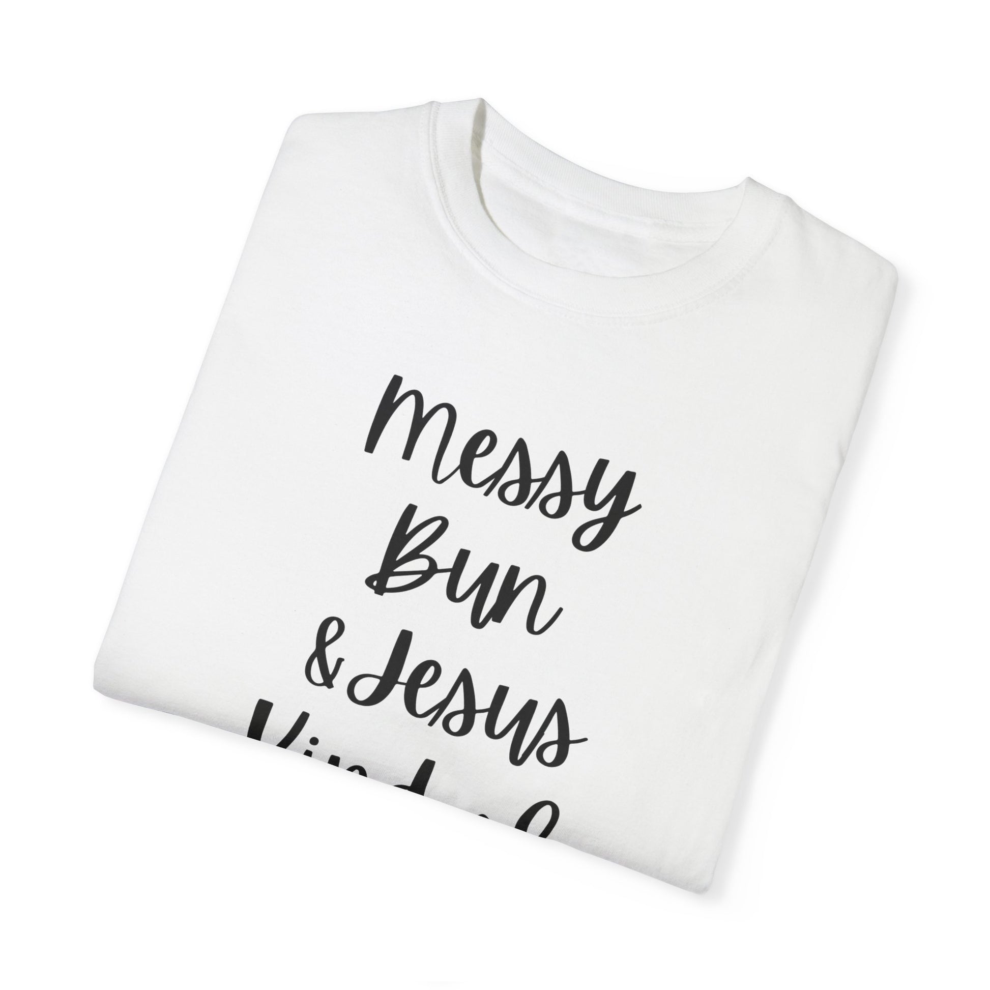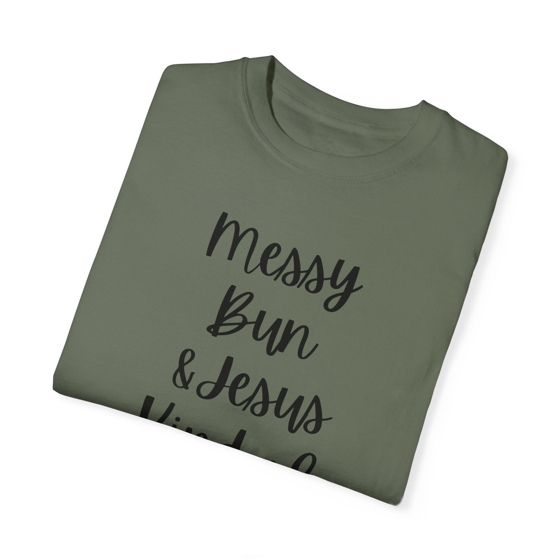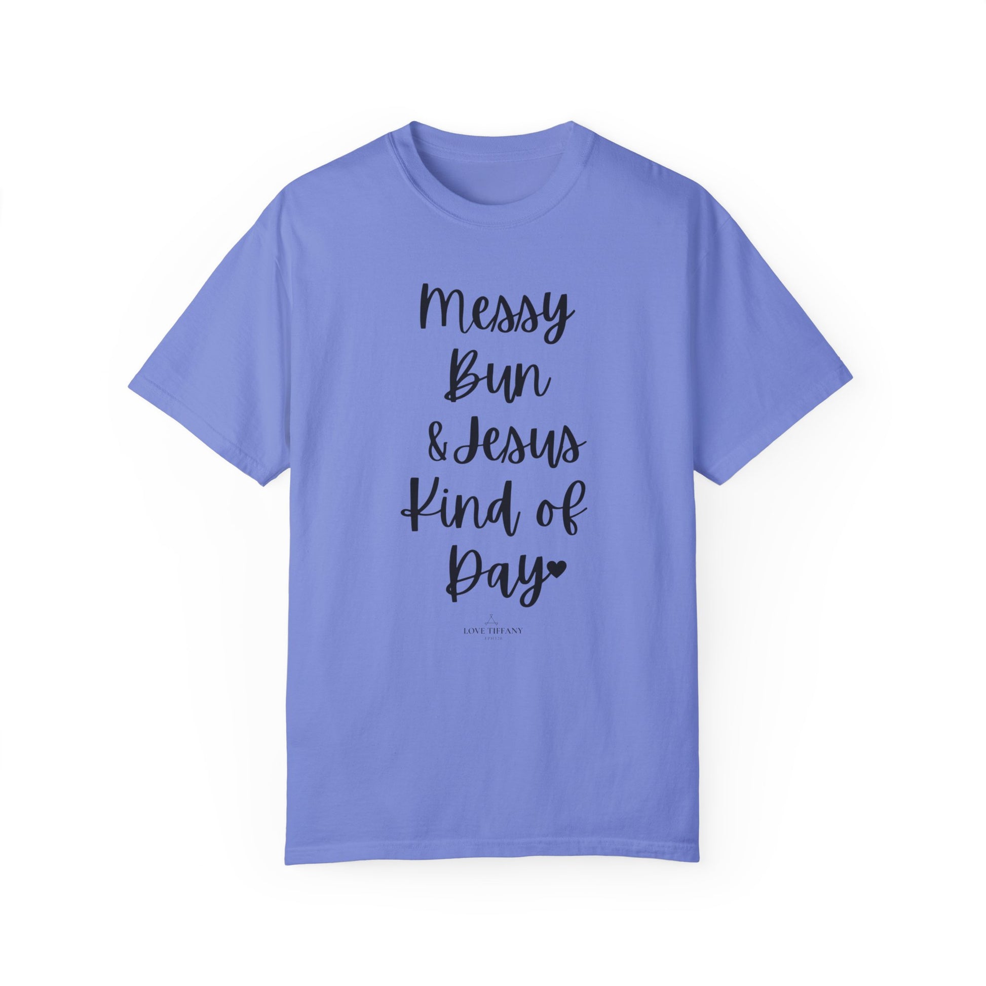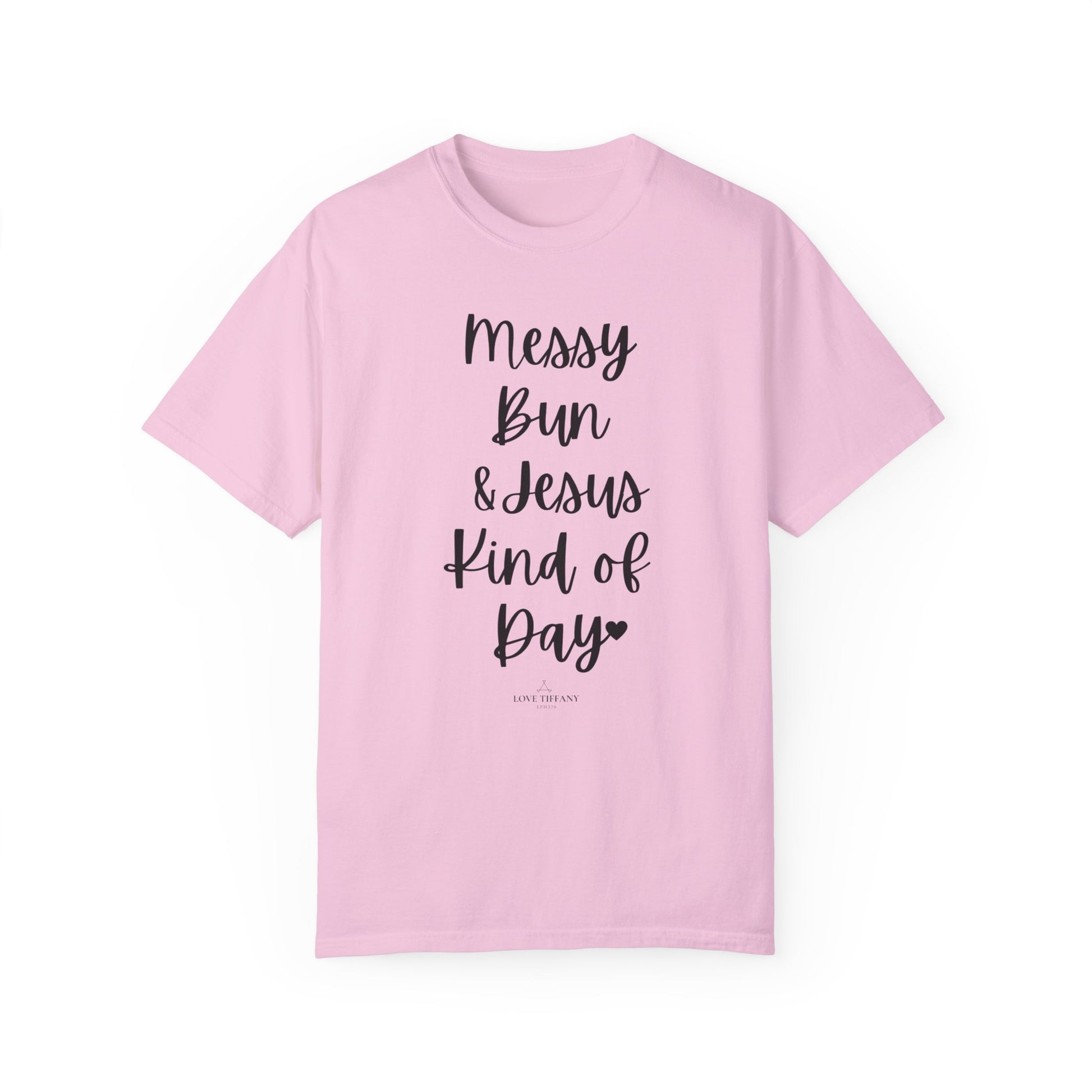 "Messy Bun & Jesus Kind of Day" Ladies Comfort Colors T-Shirt | Jesus Collection by Love Tiffany